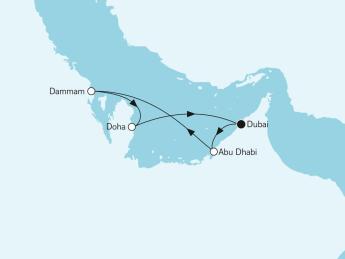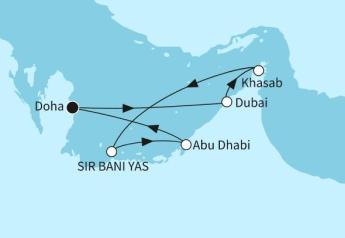 Orientalisches Flair, Wüste und atemberaubende Skylines - diese Mein Schiff Dubai Kreuzfahrten werden Sie begeistern! Erleben Sie diese TUI Cruises Dubai Kreuzfahrt mit Bahrain ganz entspannt an Bord der Mein Schiff 2 und lassen Sie sich grenzenlos verwöhnen! Bei dieser einmaligen Reise Dubai mit Bahrain erwartet Sie die Stadt Dubai als Start- und Zielhafen, inklusive 2 Übernachtungen im Hafen von Dubai, mit ihren modernen Bauten, Khasab in einmaliger Lage zwischen Wasser und Wüste, das Emirat Abu Dhabi und das königliche Bahrain. Mein Schiff Kreuzfahrten Dubai, lassen Sie sich überraschen!